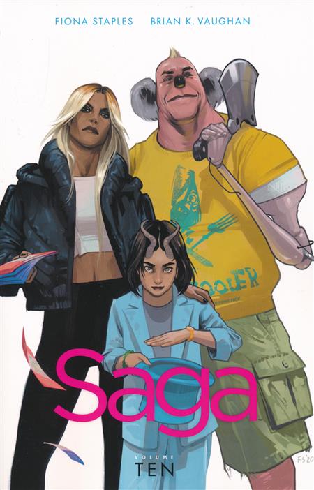Celebrating ten years of SAGA! At long last, Hazel and her star-crossed family are finally back, and they've made some new…friends? This collection features the latest six chapters of the most epic adventure in comics, including the series' double-length first issue back from hiatus. Collects SAGA #55-60