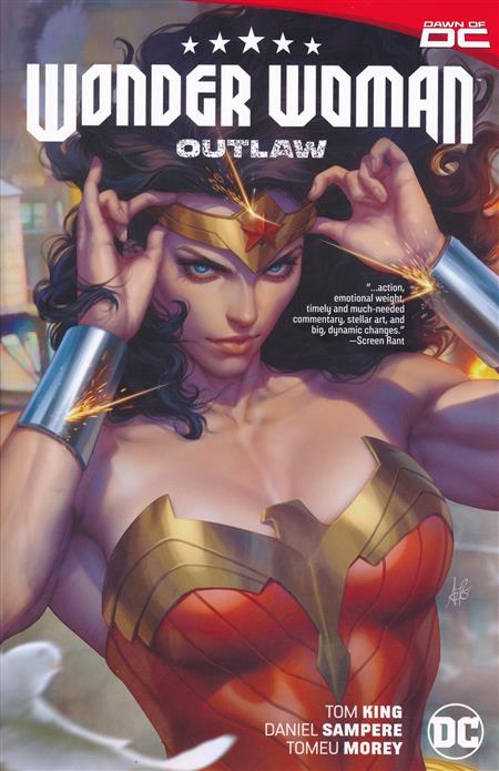 When an Amazon is accused of mass murder, Wonder Woman must find her before an elite U.S. strikeforce does. Failure will mean allout war between America and the Amazons, but that's exactly what the mysterious mastermind called the Sovereign wants! Diana faces her ultimate challenge in Wonder Woman Vol. 1: Outlaw, collecting the first issues from writer Tom King (Batman) and breakout artist Daniel Sampere (Dark Crisis)! Decades from now, we meet Trinity, the teenaged daughter of Wonder Woman, in a story that pits Diana against Giganta, Dr. Psycho, Silver Swan, and more, and introduces the Sovereign, whose Lasso of Lies may prove more powerful than Diana's powers of truth! Collects WONDER WOMAN #1-6 and a story from WONDER WOMAN #800.