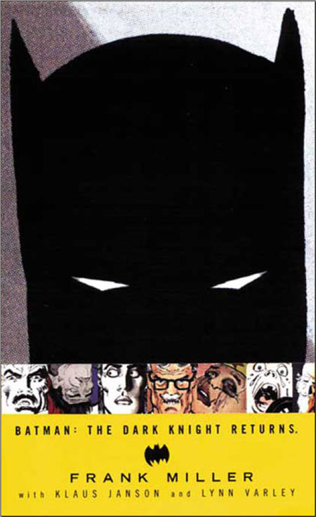 Written by Frank Miller; art and cover by Miller and Klaus Janson. Writer/artist Frank Miller's classic, and one of the most groundbreaking comic-book stories ever, returns in a new hardcover edition featuring a dust jacket designed by multiple award-winner Chip Kidd! Ten years after the Dark Knight has retired from crimefighting, he finds himself unable to exorcise the bitter memories of his parents' murders - making the long suppressed voice of his vigilante side aching to break through once more. The Dark Knight returns in a blaze of glory, fighting a new generation of crime in Gotham City. HC, 7x10, 224pg, FC
