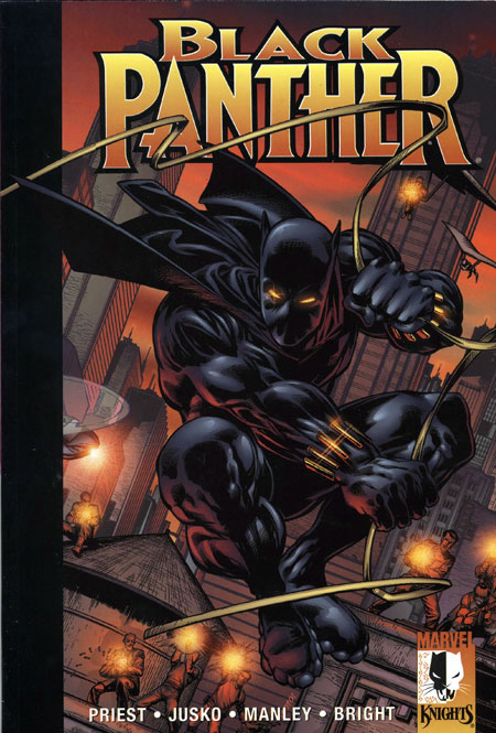 Cover by joe jusko. THE SCOOP: The critically-acclaimed Marvel Knights series gets its second volume in this heavy-hitting political thriller! THE STORY: T'Challa faces more threats to his kingdom as Christopher Priest is joined by some of the industries' brightest talents, including Joe Jusko, Mike Manley, Jimmy Palmiotti and more! Reprints BLACK PANTHER #6 - #12. THE FORMAT: 160-page trade paperback.