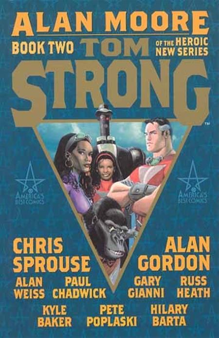 WRITTEN BY ALAN MOORE; ART BY CHRIS SPROUSE, AL GORDON, KYLE BAKER, HILARY BARTA, PAUL CHADWICK, RUSS HEATH, PETE POPLASKI, AND ALAN WEISS; PAINTED COVER BY SPROUSE AND JOSE VILLARRUBIA. From the fearsome depths of a fiery volcano to the furthest reaches of space! From Terra Obscura to the very ends of time! From a central American jungle to alternate dimensions! This book has something for everyone! Reprinting TOM STRONG #8-14, and featuring the likes of Tom Strange, Warren Strong, time travel, other dimensions, and interstellar family trips! HC, 7x10, 192pg, FC
