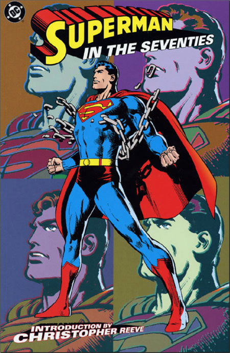SUPERMAN IN THE SEVENTIES TP. The original Super-Hero breaks free from many of the conventions that defined him in the '60s in SUPERMAN IN THE SEVENTIES, a trade paperback featuring a new introduction by the man who most defined the character in that decade: Christopher Reeve. SUPERMAN IN THE SEVENTIES is broken into sections reflecting the different challenges Superman met in a tumultuous era. In The Big Battles, he faces Captain Thunder, and meets his time-lost teenaged self, Superboy. In The Villains, Superman confronts Lex Luthor, Brainiac, The Challenge of Terra-Man! and The Parasite's Power Play! The Cast of Characters showcases the return of the Newsboy Legion; a solo tale of Krypto the Superdog; and the infamous I Am Curious (Black)! story that finds Lois Lane changing color(!) Classic Tales shows Superman freed from the threat of Kryptonite, and revisiting his boyhood home. Closing the book is Superman Takes a Wife!, the story that saw the marriage of the Earth-2 Superman and Lois Lane. Written by Elliot S! Maggin, Jack Kirby, Cary Bates, Robert Kanigher, Dennis O'Neil, Paul Levitz, and Len Wein, SUPERMAN IN THE SEVENTIES features a cover by Neal Adams and art by Kirby, Curt Swan, Dick Dillin, Murphy Anderson, Bob Oksner, Dick Giordano, Joe Giella, and others. In addition, the work of exceptional artists is represented in galleries highlighting stunning Superman covers from the era. 224-page trade paperback.