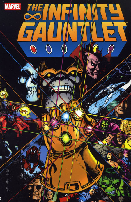 For the dark Titan, Thanos the Gauntlet was the Holy Grail, the ultimate prize to be coveted above all else. With it came omnipotence: the absolute control of all aspects of time, space, power, reality, the mind and the soul. The gaining of supreme might meant the beginning of a black nightmare for the entire universe. Now, on the edge of Armageddon and led by the mysterious Adam Warlock, Earth's super heroes join in a desperate attempt to thwart this nihilistic god's insane plunge into galactic self-destruction. Should the heroes fail, the astral gods of the universe wait to step into the fray. But in such an awesome cosmic conflict will anyone prevail? Will anyone survive