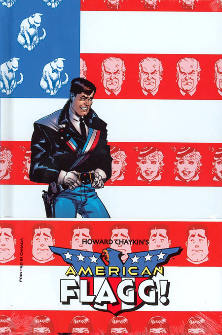 AMERICAN FLAGG! VOL. 1 HC. story HOWARD CHAYKIN art HOWARD CHAYKIN, JAMES SHERMAN, PAT BRODERICK & RICK BURCHETT cover HOWARD CHAYKIN At last: AMERICAN FLAGG! - created, written and illustrated by HOWARD CHAYKIN and winner of numerous awards and honors, including nine Eagle Awards - available for the first time as a deluxe hardcover collecting the series' first groundbreaking story arc! Plus! Additional cover paintings and promotional pieces by CHAYKIN, a MICHAEL CHABON introduction, an afterword by JIM LEE, and as a special bonus - a brand-new AMERICAN FLAGG! story written and illustrated by HOWARD CHAYKIN exclusively for this edition! Collects AMERICAN FLAGG! #1-14. 440 PAGES FC