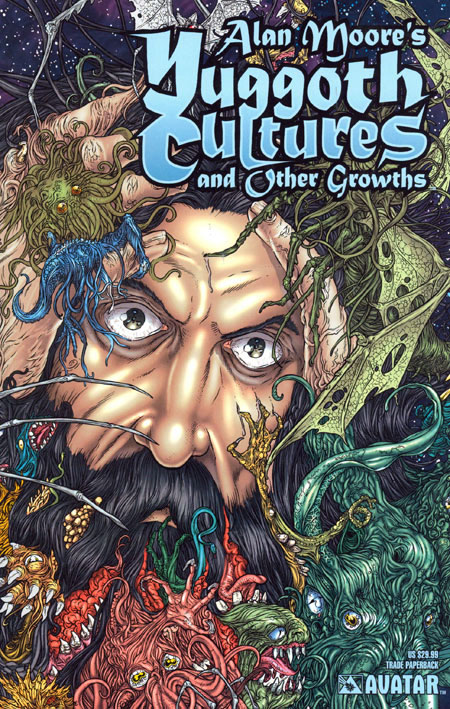 by Alan Moore, Ryp, Burrows, and Others. The career-spanning short works of Alan Moore are collected in this tome - with over 50 pages of additional material not in the original mini-series! Added in are fascinating obscure interviews about the man, his craft, and magic, as well as essays from Moore himself and loads of additional new artwork! Yuggoth Cultures and Other Growths features tons of Moore's classic short sequential comic book stories; stories that have been long out of print, that have never before been seen, and special developmental sections with original script pages and comments from Moore and the creators. Included is the amazing Nightjar (with art by Bryan Talbot), plus many more tales illustrated by Talbot, Juan Jose Ryp, Val Semieks, Mike Wolfer, Marat Mychaels, Hunt Emerson, and Jacen Burrows! Rounding out the works is a piece that is vital to any Alan Moore collection: I Keep Coming Back, a coda to the masterpiece From Hell, with art by Oscar Zarate. This massive volume also includes an extensive interview with Moore, plus Antony Johnston's Yuggoth Creatures, a work inspired by Yuggoth Cultures and the worlds of H.P. Lovecraft, with art by Ryp, Burrows, Dheeraj Verma, and many more! Also available as a hardcover edition limited to 1000 copies with a new cover by artist Juan Jose Ryp.