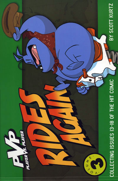 Written by SCOTT KURTZ. art & cover by SCOTT KURTZ. Cole and Brent are locked inside a comic book shop and trapped under a pile of long boxes, Francis prepares to direct the greatest fan-film of all time, the cat tries to take over the world and the entire PvP crew heads to the San Diego Comicon. All that's missing is Don Knotts...and YOU! Yep, it's another collection of the Eisner-nominated comic strip that kicks the funny pages straight in the groin. The yuks never stop comin'. Collected PvP #13-18. 144 pg