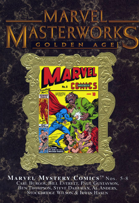 Written & Illustrated by CARL BURGOS, PAUL GUSTAVSON, BILL EVERETT, AL ANDERS, BEN THOMPSON, STEVE DAHLMAN & MORE. Cover by BILL EVERETT. Marvel proudly presents more Golden Age goodness, reprinting issues #5-8 of MARVEL MYSTERY COMICS from 1940. This hardcover collection remasters and restores these early adventures, some reprinted for the very first time! See the Human Torch join the police force! Witness the execution of the Sub-Mariner! Plus: In the wake of the Sub-Mariner's attack on New York City, the Torch and the Sub-Mariner face off in their historic first meeting!
