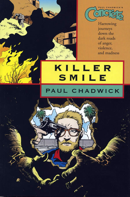 PAUL CHADWICK (W/A). Standing in the shadow of celebrity has its ups and downs, as Concrete's personal assistant, Larry Munro, knows all too well. But there are darker places than any shadow, as Larry learns the hard way when he is taken hostage by a psychotic gunman who forces Larry to be his chauffeur on a road trip destined to end in disaster... unless Larry can muster the courage to act. The return of Paul Chadwick's award-winning Concrete has ushered in a resurgence of interest in the acclaimed series, and Killer Smile is Chadwick's darkest Concrete work, a harrowing tale Frank Miller called "edge-of-your- seat suspense, full of unpredictable twists and turns." This value-priced volume collects Killer Smile plus bonus short stories. SC, 184pg, b&w, 6" x 9".