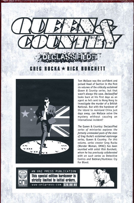 by Greg Rucka & Rick Burchett. The spine-tingling tale from Tom Wallace's past is collected in the deluxe hardcover format Queen & Country readers love! This foil-embossed volume is the perfect addition to your Q&C hardcover library. MATURE THEMES. SC, 7x10, 88pgs, B&W.