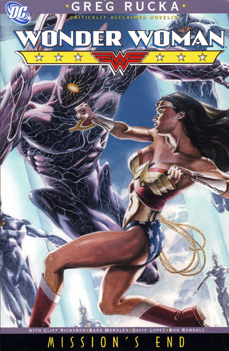 Written by Greg Rucka. Art by Rags Morales, Cliff Richards, David Lopez and various. Cover by J.G. Jones. Wonder Woman may have regained her sight, but her troubles are far from over in this volume collecting issues #218-226! In the midst of INFINITE CRISIS, the Amazing Amazon is forced to battle the Man of Steel -- leading to an incident that will forever change her relationship with Superman. 208 pg, FC.