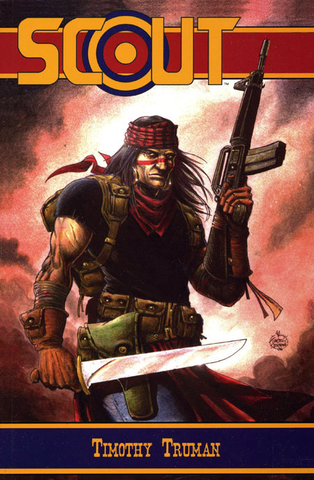 By Timothy Truman. Advance-Solicited for August 2006! Originally published in 1987 and created by Timothy Truman, Scout featured the Native American hero, Emanuel Santana, and his one-man war against oppressive governmental forces in a post-apocalyptic United States. Now, this revered and powerful series is re-mastered and presented to a new generation! This volume features the first 7 issues of the series, all featuring the writing and art of Truman, remastered and recolored for this volume! Plus, Truman provides a new original cover! Bonus features include: an introduction by John Ostrander, an afterword - in the form of an interview - with creator Tim Truman, plus an original cover gallery. SC, 168pgs, FC.