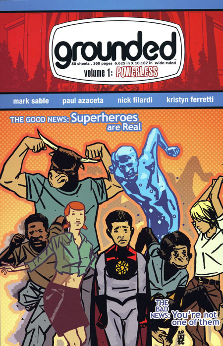 story by MARK SABLE art & cover by PAUL AZACETA. The good news: Superheroes are real. The bad news: You're not one of them. When Jonathan is sent to a high school for super-powered teens, he's forced to abandon his dream of having powers and deal with the reality that he's the only kid without them. Collects GROUNDED #1-6. 160 pg, FC