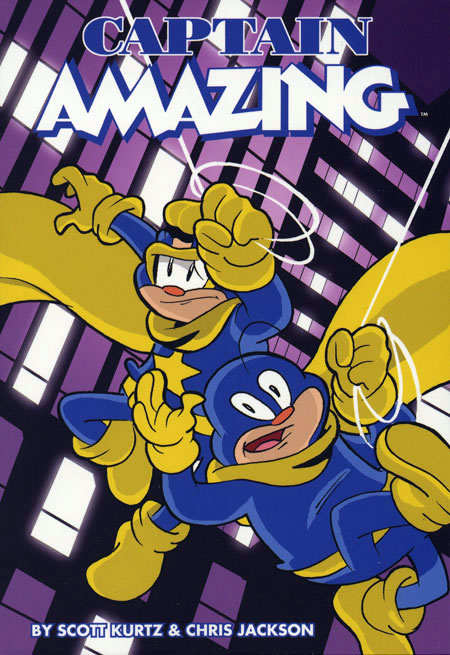 Story SCOTT KURTZ. art & cover SCOTT KURTZ. Before PvP, before TRUTH, JUSTIN AND THE AMERICAN WAY... there was CAPTAIN AMAZING. Follow the debut adventure of this determined little hero as he fights for the right to be sole protector of Metro City. Collects some of SCOTT KURTZ's earliest work from his 1995 mini-comic as well as comic strips from his college newspaper days. A must for PvP fans interested in the origins of Scott's work. SC, 80pgs, B&W.