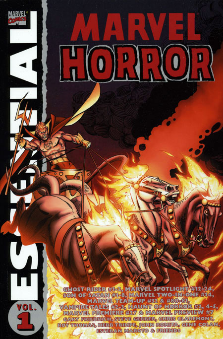 Written by GARY FRIEDRICH, STEVE GERBER, MIKE FRIEDRICH, CHRIS CLAREMONT, JOHN WARNER, BILL MANTLO, GERRY CONWAY, ROY THOMAS & TONY ISABELLA. Penciled by TOM SUTTON, HERB TRIMPE, JIM MOONEY, GENE COLAN, SAL BUSCEMA, BOB MCLEOD, JIM STARLIN, SONNY TRINIDAD, CRAIG RUSSELL, ED HANNIGAN, RUSS HEATH, JOHN ROMITA, HERB TRIMPE, MIKE VOSBURG, ESTEBAN MAROTO, PABLO MARCOS, ENRIQUE ROMERO & GEORGE EVANS. Cover by GIL KANE. What's it like to be the son and the daughter of the Father of Lies? Find out as Daimon Hellstrom and his sister, Satana, face the worst of two worlds! Can they save their souls along with the world? Featuring Exorcists, Cyclists, Nihilists and Ice Demons! Secrets of Ancient Atlantis revealed! Guest-starring Spider-Man, the Thing and the Human Torch! Collects GHOST RIDER #1-2, MARVEL SPOTLIGHT #12-24, SON OF SATAN #1-8, MARVEL TWO-IN-ONE #14, MARVEL TEAM-UP #32 and #80-81, VAMPIRE TALES #2-3, HAUNT OF HORROR #24-25, and MARVEL PREMIERE #27. 608 PGS./Parental Advisory.