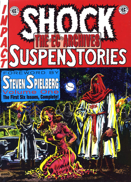 by Various. This beautifully bound hardcover reprints the first six complete issues (24 stories) of the comic book Shock SuspenStories, originally published in 1952. Includes stories by Gaines & Feldstein with art by Jack Kamen, Jack Davis, Joe Orlando, Graham Ingles, and Wally Wood. Featuring a foreword by Steven Spielberg this book looks back at some of the edgiest and best written stories in comic history.