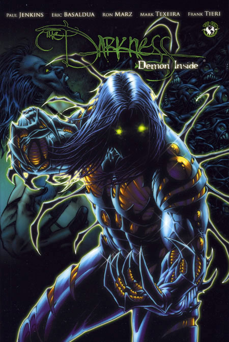 (W) Paul Jenkins, Ron Marz, Frank Tieri. (P) Eric Basaldua, Martin Montiel, Mark Texiera. The 10th Anniversary of The Darkness! Collecting The Darkness volume 2 issues #7- #16 plus the one shot The Darkness: Wanted Dead this trade paperback collection delivers new tales of The Darkness from some of the industries biggest names! Following the events from The Darkness: Resurrection Jackie has to reestablish his control over the mafia and does a final face off with his Uncle Paulie. With stories by Paul Jenkins (Wolverine: Origins, Civil War) and superstar Ron Marz (Green Lantern, Witchblade) this is a must have for any collection! SC, 7x10, 272pgs, FC.