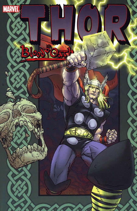 Written by MICHAEL AVON OEMING. Penciled by SCOTT KOLINS. Cover by SCOTT KOLINS. Travel back in Marvel history for a classic Thor adventure! Stepping out of the past of the glorious days of Kirby, Lee and Buscema, THOR: BLOOD OATH presents Thor in his prime, with your favorite cast -- including Odin, Balder, the Warriors Three and more! The Warriors Three are put on trial for murder. Standing beside his brothers-in-arms, Thor ties himself to their fate, as they are sent on an impossible journey by the Giants to pay their "weird" a blood price for the killing of a Giant's son. Thor and his three allies will journey across the lands, through Greece, Midgard, Asia and Africa, and clash with gods, monsters, the dead and occasionally each other! Collects THOR : BLOOD OATH #1-6. 144 PGS.