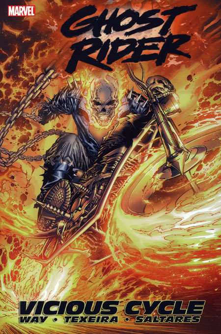 Written by DANIEL WAY. Penciled by JAVIER SALTARES & MARK TEXEIRA. Cover by MARC SILVESTRI. Once upon a time, Johnny Blaze made a deal with the Devil - and to no one's surprise but his own, he got shafted. Now trapped in hell, with the Spirit of Vengeance bonded to his immortal soul and weighing him down, Johnny may have finally found a way out. But at what cost? From the depths of Hell to the glittering spires of Heaven, the Ghost Rider rides again, blazing new trails and dispensing fiery vengeance in his wake. The demonic team of Daniel Way, Mark Texeira and Javier Saltares reunite to put ol' Flamehead back in the saddle where he belongs. Ready or not, here he comes! Collecting GHOST RIDER #1-5. 120 PGS.