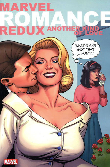 Written by JEFF PARKER, JOHN LUSTIG, KEITH GIFFEN, JIMMY PALMIOTTI, JOHN LUSTIG, ROGER LANGRIDGE, KYLE BAKER, FRED VAN LENTE, MICHAEL LEIB, ROBERT FLEMING, KIRSTEN SINCLAIR, PETER DAVID, JOE LANSDALE & PAUL DI FILIPPO. Penciled by JOHN BUSCEMA, DON HECK, JOHN ROMITA, JACK KIRBY, GENE COLON, DICK GIORDANO, SOL BRODSKY & VINNIE COLLETTA. Cover by FRANK CHO. Continuing the noble pursuit of taking funny old pictures and putting funny words on top of them! We've asked some of the funniest writers in comics today to look at the romance comics of yesteryear and put in some new dialogue that'll make us laugh! Unfortunately, the funniest writers were busy, so we had to settle on these guys. Hey, you get what you pay for! Collecting MARVEL ROMANCE REDUX: BUT HE SAID HE LOVED ME!, I SHOULD HAVE BEEN A BLONDE, LOVE IS A FOUR-LETTER WORD, RESTRAINING ORDERS ARE FOR OTHER GIRLS and GUYS & DOLLS. 176 PGS.