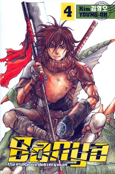 After last volume's shocking cliffhanger, Banya's screams are still ringing across Gaya's wastelands, and the desert deliverymen are in some serious danger. The future is at stake, and fists are about to fly, as two bloodthirsty villains corner our heartbroken hero. He's kept his cool while mingling with the monstrous Torren, fighting off gargantuan pit bulls, and dodging the giant Gwichi worm's sneak attacks-but now Banya has gone crazy with anguish and rage and is about to unleash a world of hurt on two mutated killers! This second-to-last volume of Banya: The Explosive Delivery Man isn't all gloom and doom, though, as Kim Young-Oh continues to mix incredible artwork and fast-paced storytelling with perfectly timed slapstick moments and surprising plot twists.