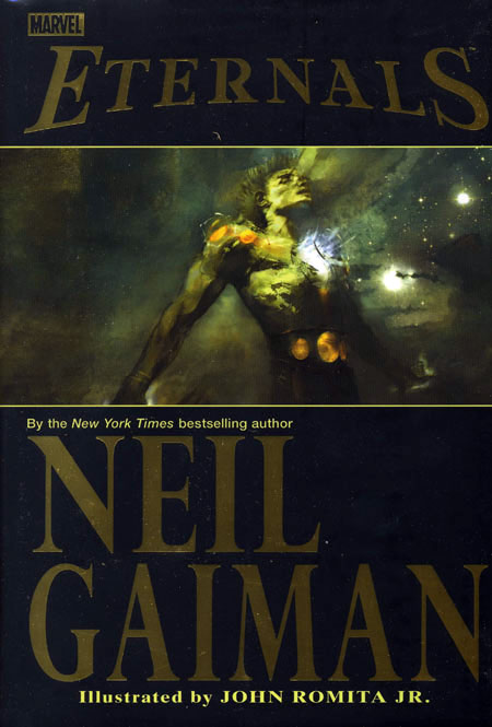 Written by NEIL GAIMAN Penciled by JOHN ROMITA JR. Cover by JOHN ROMITA JR or RICK BERRY. You are thousands of years old. You have amazing powers. You have watched civilizations rise and fall. So why does no one remember any of this? Best-Selling Author Neil Gaiman (MARVEL: 1602, Anansi Boys, Sandman) is joined by superstar artist John Romita Jr. (AMAZING SPIDER-MAN, WOLVERINE) to present a tale that will change the Eternals and the Marvel Universe forever! Collecting ETERNALS #1-7. This 256-page hardcover is prefaced with an introduction by television writer (and Kirby friend) Mark Evanier. Also included are reproductions of JR Jr's and Olivier Coipel's variant covers, the MARVEL SPOTLIGHT interview with Gaiman about his work on the series, JR Jr's character sketches (juxtaposed with Kirby's original designs) and select pencil reproductions, Gaiman's original proposal, and an overview of Kirby's original series by author and comics historian Robert Greenberger. Available in two dust jacket designs, one by JR Jr. and the other by renowned fantasy artist Rick Berry.