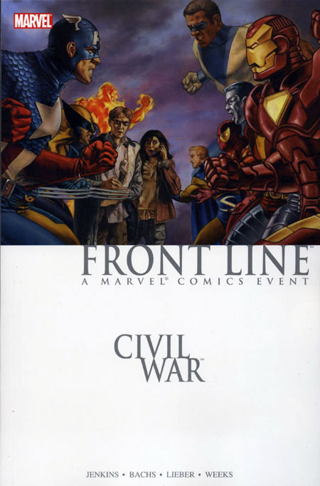 Written by PAUL JENKINS. Penciled by RAMON BACHS, STEVE LIEBER, LEE WEEKS & MORE. Covers by JOHN WATSON. In 'Embedded', there's a truth buried deep in the heart of every war, and reporters Sally Floyd and Ben Urich will be there, uncovering that truth in the midst of the biggest conflagration in the Marvel Universe! In the wake of the Stamford disaster, the public cries out for super hero registration. Are the costumed heroes of the Marvel Universe protectors or ticking time bombs? Find out here! And in 'The Accused', the lone survivor of the team that caused the Stamford tragedy has been found. But living through one of the worst super human disasters in history may be the worst thing that could happen, as this vilified hero is placed under arrest for the deaths of an entire town. Unfortunately, the trouble's just beginning. Also featuring 'Sleeper Cell,' starring Wonder Man, and true tales of war time in 'Correspondence.' CIVIL WAR: FRONT LINE BOOK 1 TPB Collecting CIVIL WAR: FRONT LINE #1-6. 208 PGS.