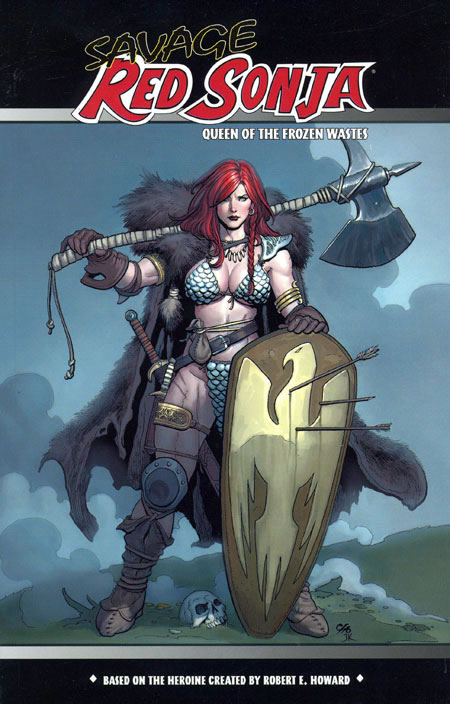 by Frank Cho, Doug Murray, & Homs. Dynamite's smash Red Sonja mini-series from creators Frank Cho, Doug Murray, and Homs is collected in one affordable softcover edition! Savage Red Sonja: Queen of the Frozen Wastes delivers and action-packed story and incredible art as Sonja battles the beautiful and deadly Ice Queen and her army of Yeti warriors! This collection features all four issues of the series, a complete cover gallery featuring Frank Cho's incredible covers, and more! Available in Regular and Previews Exclusive cover editions!