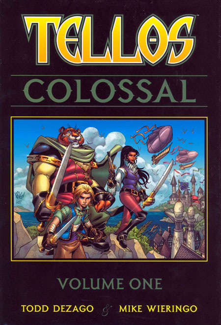 story TODD DEZAGO. art & cover MIKE WIERINGO. Now for the first time in one stunning, oversized hardcover edition-TODD DEZAGO and MIKE WIERINGO's award-winning epic fantasy, TELLOS! Journey with young Jarek and tiger-warrior Koj as they team up with a pirate princess called Serra, to confront the terrible Malsur who is set on devouring the denizens of this magical patchwork world! TELLOS is an all-ages rollercoaster of action and adventure, mystery and magic, and good versus evil! The perfect format for the perfect bedtime story-for children of ALL ages! MAY NOT BE SUITABLE FOR ALL AGES. HC, 288pgs, FC.
