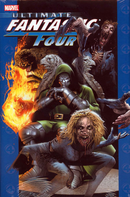 Written by MARK MILLAR. Penciled by GREG LAND & MITCH BREITWEISER. Cover by GREG LAND. This deluxe hardcover collects ULTIMATE FANTASTIC FOUR VOL. 5: CROSSOVER and ULTIMATE FANTASTIC FOUR VOL. 6: FRIGHTFUL, plus extras. In Crossover, it's the rise of the Marvel Zombies! Even in their short careers, the Ultimate FF have seen a lot of amazing things - but nothing will prepare them for the world they're about to enter! Reed Richards has used his scientific genius to contact an Earth in a surprisingly familiar parallel dimension - and he's ready to visit! Plus: The shocking secret of the Storm family is finally revealed! Locked away at the bottom of the ocean for 5,000 years, Namor the Sub-Mariner's Atlantean tomb has been breached; now, he's back to rule a planet. This is a Namor you've never seen before with a vastly different agenda. This is Ultimate Namor! Learn about the ties between Atlantis, the Ultimate Inhumans and the super-races that existed before man ruled the Earth! And in Frightful, guilt-ridden Reed Richards attempts to undo his greatest failure by using time travel to fix the snag that caused the teleportation accident that resulted in Ben Grimm becoming the Thing. If it works, Ben will be Ben and the Thing will never have existed. And neither will the FF. Be careful what you wish for! Plus: the awesome return of Dr. Doom! The zombiefied FF escape from their Baxter Building prison! The deadly debut of the Frightful Four! Johnny Storm finds out he has only 28 days to live! And that's all just for starters! Collecting ULTIMATE FANTASTIC FOUR #21-32. 296 PGS.