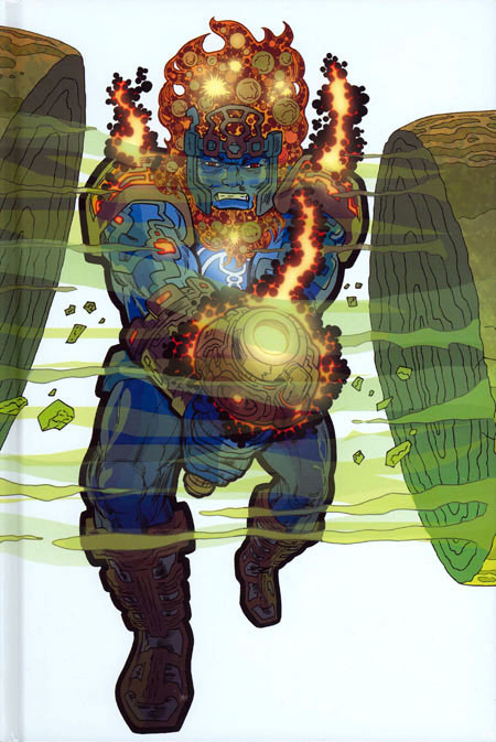 Story JOE CASEY. art & cover TOM SCIOLI, NICK FILARDI & RICHARD STARKINGS. BOOK ONE IS HERE! See how the greatest cosmic superhero epic of the new century began! See Commander Adam Archer, Maxim, Basil Cronus, Nickelhead, IBOGA and more in all their oversized glory! What other book delivers the Secret Origin of the Universe? None! What other book squeezes your guts like an angry Torture-Bot? None! Only GODLAND gives you everything you'll ever need! Collects GODLAND issues #1-12 plus over 40 pages of cosmic-powered, behind-the-scenes extras! HC, 360 PAGES, FC.