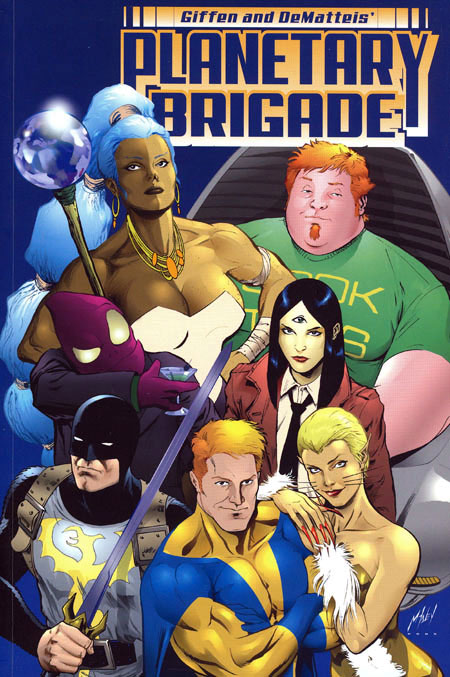 by Giffen, DeMatteis, & Haley. The Planetary Brigade is a group of heroes fronted by Squared's Captain Valor and Grim Knight. Meet Mr. Brilliant - Earth has never met a smarter, or more smug, hero. Earth Goddess - by day, she's a sweet, unassuming wallflower, but when the Earth needs her, she turns into a gargantuan guardian of the plane. Purring Pussycat - sweet, sexy... what's she hiding? The Third Eye - spiritual mystic. The Mauve Visitor - strange visitor from another world, or cute little Smurf-like dude? Together, they're in a league all their own!