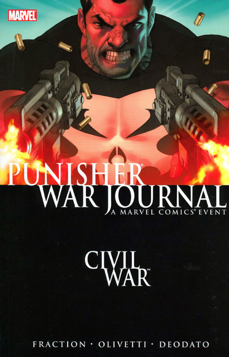 Written by MATT FRACTION. Penciled by ARIEL OLIVETTI. Cover by ARIEL OLIVETTI. Hey, there, Marvel Universe. He's back - with a vengeance. Taking no prisoners. Literally. With CIVIL WAR in full throttle mode, Frank Castle is feeling the heat. His safe houses have been raided and his munitions seized, and he's square in the crosshairs of a Marvel Universe big gun who always gets his man. Until now, this wasn't Frank's war. But when Spandex-clad baddies start carrying badges - well, let's just say that's something the Punisher can't abide. Brought to you by rising star Matt Fraction (The IMMORTAL IRON FIST), with eye-popping art by superstar Ariel Olivetti (LAST AVENGERS STORY). Collecting PUNISHER WAR JOURNAL #1-4, plus the black-and-white edition of issue #1.