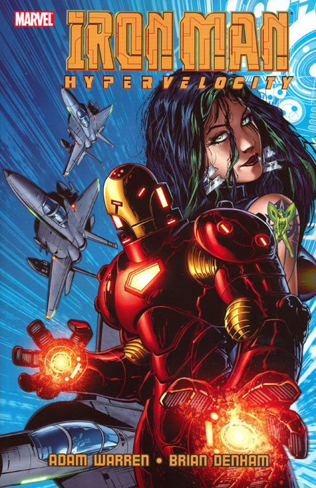 Written by ADAM WARREN. Penciled by BRIAN DENHAM. Cover by BRIAN DENHAM. A single, grueling night of high-speed, mechanized mayhem finds Tony Stark and a new, uniquely improved version of the Iron Man armor caught in the crossfire between the bleeding-edge technology of an insurgent mecha subculture and the massed hardware of an elite 'cape-killing' paramilitary force. Besieged by ballistic missiles, supersonic jihadi LMDs, seductive viral avatars and cyberdrug-addled roboravers, Iron Man must push himself far beyond his technological and biological limits to survive the onslaught of ultra-tech war machinery... Collecting IRON MAN: HYPERVELOCITY #1-6.