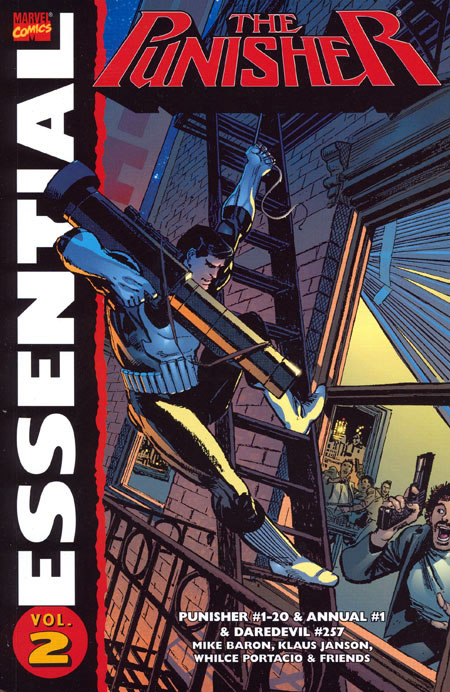 Written by MIKE BARON, ROGER SALICK, ELIOT R. BROWN & ANN NOCENTI. Penciled by KLAUS JANSON, DAVID ROSS, WHILCE PORTACIO, MARK TEXEIRA, MIKE VOSBURG, ELIOT R. BROWN & JOHN ROMITA JR. Cover by KLAUS JANSON. Mobsters, terrorists, neo-Nazis, religious fanatics, armored killers; no one's too tough for the Punisher! Follow the trail of blood as Frank Castle's war on crime takes him across the country, south of the border, back to school and Down Under! Plus: The Man With Lots Of Guns vs. the Man Without Fear in a crossover with Daredevil! And who will live and die when the Punisher leads what might be the world's shortest-lived crime-fighting team against the Kingpin of Crime? With Typhoid Mary and a cameo by the X-Men! Collecting PUNISHER #1-20 and ANNUAL #1, and DAREDEVIL #257.
