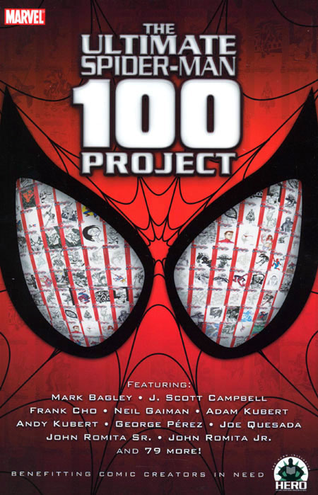 You've seen the amazing art. You've seen the original covers sell for up to $6700! Now you can get your very own copy of all 100 Hero Initiative Ultimate Spider-Man #100 covers! This stellar artbook includes great Spidey art from Mark Bagley, J. Scott Campbell, Frank Cho, Neil Gaiman, Adam and Andy Kubert, George Perez, Joe Quesada, John Romita Sr. and Jr. and many more! And would you believe it has in introduction by Stan 'The Man' Lee himself? NOTE: Through special arrangement with Marvel Comics, there will be only one printing of this book ever! Order it now so you don't blow your chance, True Believers!
