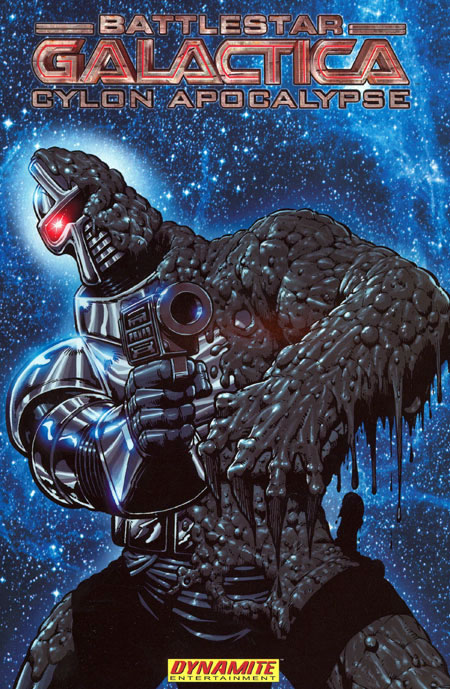 By Javier Grillo-Marxuach & Carlos Rafael. D.E. presents an all-new, Battlestar Galactica event featuring the Dynamite Debut of writer Javier Grillo-Marxuach (ya' know, the guy behind such hit shows as Lost and Medium) as he unleashes the Cylon Apocalypse! Dual revelations rock the rag-tag fleet as a routine Viper patrol puts them on the edge of a bizarre scene - Cylon Raiders attacking one of their own Basestars! As the Cylon Basestar crashes into an ocean-covered world, Adama and Starbuck discover a bizarre creature that appears to be a Cylon Centurion engulfed by diseased flesh. The Cylons are sick, and the apocalypse has begun! Grillo-Marxuach is joined by Battlestar artist Carlos Rafael, along with colourist Carlos Lopez for this special comic book event, collected here for the first time! All four issues of the series are collected here along with a special cover gallery featuring the works of Jim Starlin, Michael Golden, Pat Lee, Carlos Rafael and Stephen Sadowski!