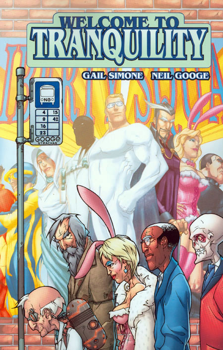 Written by Gail Simone. Art and cover by Neil Googe. Collecting the first six issues of the acclaimed series by Gail Simone and Neil Googe! Tranquility is a small town like any other, except for one difference: It's the place where super-powered beings go to retire from crimefighting. But when the town is turned upside down by a murder, it becomes evident that everything isn't as quaint as it seems!