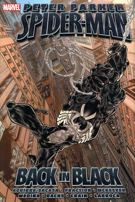 Written by ROBERTO AGUIRRE-SACASA, MATT FRACTION & SEAN MCKEEVER. Penciled by ANGEL MEDINA, RAMON BACHS, LEE WEEKS, SALVADOR LARROCA & TERRELL BOBBETT. Cover by ANGEL MEDINA. The second massive hardcover collecting the status-quo-shattering BACK IN BLACK saga! Reeling in the aftermath of CIVIL WAR, Peter Parker has plenty of reasons to consider a change of wardrobe: Black is his state of mind. But the worst is yet to come for Spider-Man! In SENSATIONAL SPIDER-MAN, as Spider-Man and his family get used to the new status quo...other Spider-Men begin appearing all over the city. Younger, less-experienced versions of our web-spinning hero, causing havoc wherever they go. Who's creating these arachnid dopplegangers and why? And will Peter Parker be able to stop them, and whoever's behind them, before more lives are lost? And in SPIDER-MAN FAMILY, Peter Parker and his supporting cast get all-new, untold tales featuring the original alien symbiote black costume. Collecting SENSATIONAL SPIDER-MAN #35-40 and ANNUAL #1, SPIDER-MAN FAMILY #1-2, SPIDER-MAN: BACK IN BLACK HANDBOOK and MARVEL SPOTLIGHT: SPIDER-MAN-BACK IN BLACK.