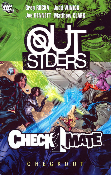 Written by Judd Winick and Greg Rucka. Art by Joe Bennett, Matthew Clark, Eddy Barrows and others. Cover by Clark & Art Thibert. Collecting the explosive crossover from Checkmate #13-15 and Outsiders #47-49! The DCU's top spies throw down with the DCU's most troublemaking hero team as Checkmate hunts the Outsiders!
