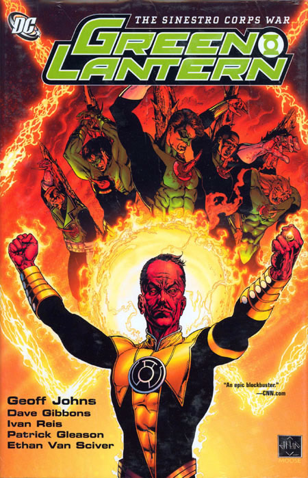 Written by Geoff Johns and Dave Gibbons. Art by Ethan Van Sciver, Ivan Reis, Patrick Gleason and others. Cover by Ethan Van Sciver. The landmark story arc that shook the Green Lantern Corps to its foundations is collected in this hardcover volume featuring the best-selling Green Lantern 21-22, Green Lantern Corps 14-15, Green Lantern: Sinestro Corps Special #1! Sinestro's army of fear has gathered: Arkillo! Karu-Sil! The Cyborg-Superman! And hundreds more of the most terrifying villains the universe has ever seen! Hal Jordan has overcome great fear throughout his life, but what fear still lingers inside him? Parallax knows, and Hal's about to be reminded as he leads Earth's Green Lanterns on a life-or-death rescue mission in the middle of this war. Meanwhile, the Guardians of the Universe find dissent within their ranks as a bizarre prophecy is fulfilled.