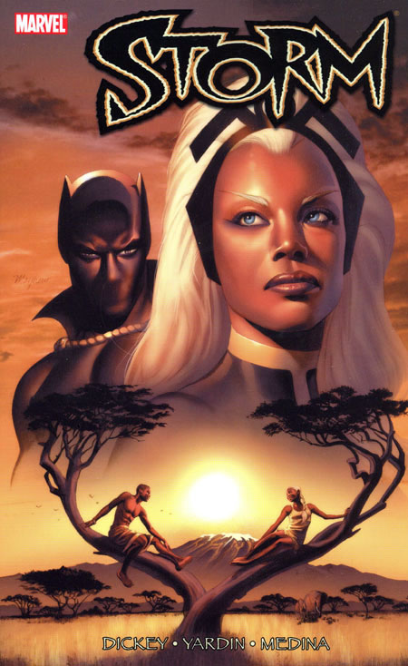 Written by ERIC JEROME DICKEY. Penciled by DAVID YARDIN & LAN MEDINA. Cover by MIKE MAYHEW. The epic, untold love story between Marvel's two pre-eminent black super heroes - Storm and the Black Panther - is finally told, as only New York Times best-selling author Eric Jerome Dickey can do it! An orphaned street urchin, living by her wits on the unforgiving plains of Africa, struggles to harness her slowly developing mutant powers. A warrior Prince, embarking on his rite of passage as he ponders the great responsibility in his future. And a crew of ruthless mercenaries who'll stop at nothing to capture an elusive creature of legend: the fabled wind-rider. What sparks occur when their paths intersect? Don't miss out on this prelude to the wedding of Storm and the Black Panther! Collecting STORM #1-6. 160 PGS.