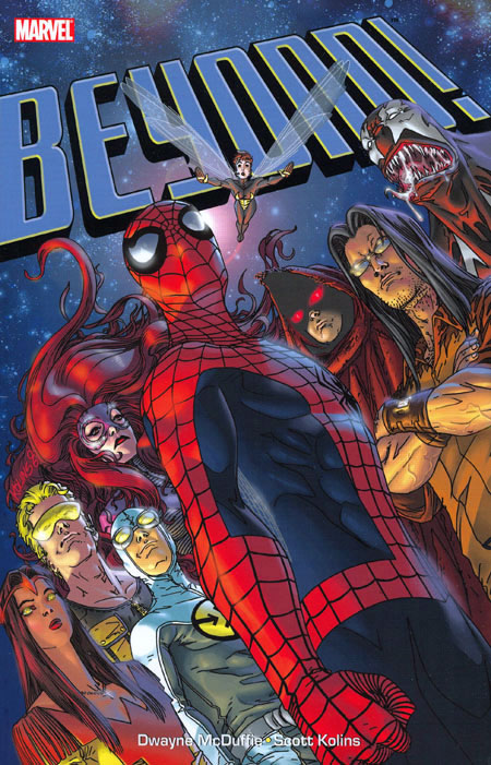 Written by DWAYNE MCDUFFIE. Penciled by SCOTT KOLINS. Cover by SCOTT KOLINS. An indescribably powerful cosmic being gathers nine of Marvel's most mismatched super beings for purposes beyond their comprehension. Can Spider-Man, Gravity, Venom, Henry Pym, the Wasp, Medusa, Kraven, Firebird and the Hood keep from killing each other until they must face the dangers of their destination, the deadly artificial planet known as Battleworld? 144 PGS.