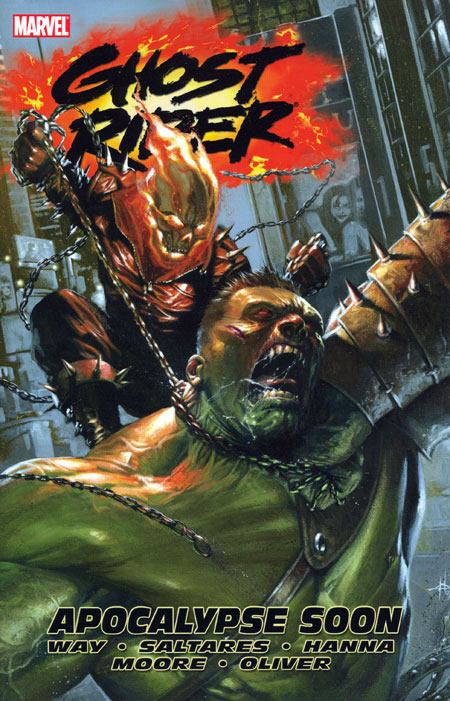 Written by DANIEL WAY & STUART MOORE. Penciled by JAVIER SALTARES, MARK TEXEIRA & BEN OLIVER. Cover by GABRIELE DELL'OTTO. Johnny Blaze has-against the will of the Ghost Rider bonded to his soul-decided to try to help the people of New York City against the unstoppable juggernaut that is the Hulk...by attacking the Hulk, head-on! Johnny just wants to do some good...but isn't that what he always says before he does something ultimately catastrophic? Also, there is an important new character in Ghost Rider's world. A powerful player with a unique place in the battle between Heaven and Hell appears, known only as Mister Eleven, but whose side is he on? Collecting GHOST RIDER #12-13 and ANNUAL #1. 96 PGS.