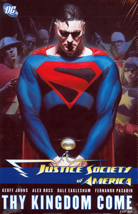 Written by Geoff Johns & Alex Ross. Art by Dale Eaglesham, Ruy Jose, Fernando Pasarin and Rodney Ramos. Cover by Ross. A stunning new volume collecting JUSTICE SOCIETY OF AMERICA #7-12, featuring the prelude to and the first three parts of 'Thy Kingdom Come,' the sequel to the classic KINGDOM COME! Welcome the newest member to the Justice Society of America: the Kingdom Come Superman! Coming from an Earth plagued by heroes-gone-extreme, how will this Superman react to an incarnation of the Justice Society he never knew?