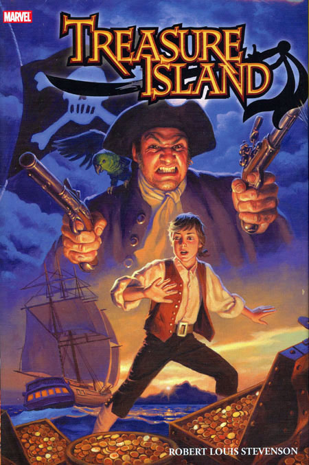Written by ROY THOMAS (based on the novel by ROBERT LOUIS STEVENSON). Penciled by MARIO GULLY. Cover by GREG HILDEBRANDT. Robert Louis Stevenson's seafaring adventure is brought to graphic life by scrivener Roy Thomas (X-MEN, AVENGERS, CONAN) and a new penciling sensation Mario Gully! This is a classic tale that has thrilled generations of readers, taken in by the allure of the sea - as only Stevenson could present it! Don't dare miss this limited adaptation of the entire novel, me hearties, or walkin' the plank ye'll be! Collecting MARVEL ILLUSTRATED: TREASURE ISLAND #1-6.