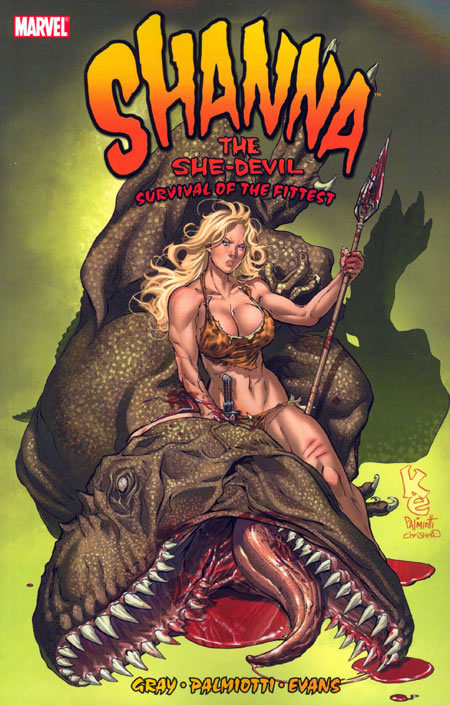 Written by JUSTIN GRAY & JIMMY PALMIOTTI. Penciled by KHARI EVANS. Cover by KHARI EVANS. Shanna the She-Devil returns in an all-new series jam-packed with jungle action, Hong Kong gangsters, dinosaurs, diamonds and cavemen! Justin Gray and Jimmy Palmiotti reunite with super-hot artist Khari Evans (DAUGHTERS OF THE DRAGON) to bring you the story of modern-day pirates shipwrecked on the Marvel Universe's deadliest island, where only Shanna can protect them from hordes of man-eating monsters! Collecting SHANNA THE SHE DEVIL: SURVIVAL OF THE FITTEST #1-4.