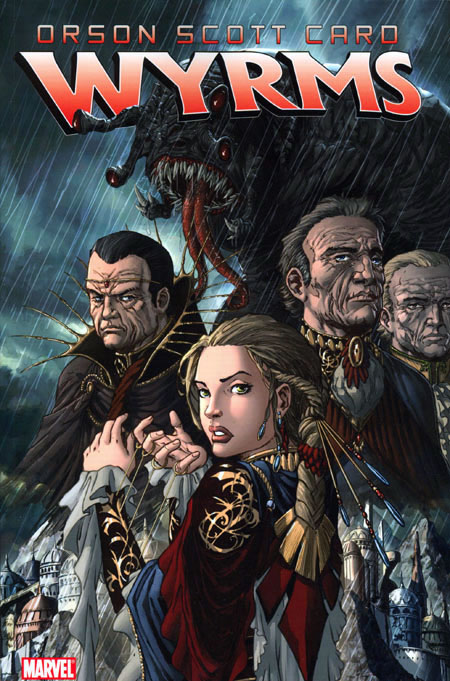 Written by ORSON SCOTT CARD. Adapted by JAKE BLACK. Pencils by ADRIANO BATISTA. Cover by ADRIANO BATISTA. Fusing high science fiction with the classical mythological archetype of the quest, New York Times best-selling author Orson Scott Card's WYRMS is a must-read for any fan of science fiction and fantasy. Featuring a world settled by humans from a crashed starship who have built their own unique society, WYRMS is a story full of many themes and ideas, crafted by the writer responsible for such masterpieces as ENDER'S GAME and SPEAKER FOR THE DEAD. And with stunning artwork by Adriano Batista that brings these characters to life, WYRMS is a can't miss event! Collecting WYRMS 1-6.