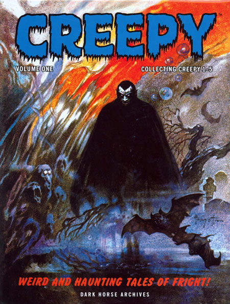 Gather up your wooden stakes, your blood-covered hatchets, and all the skeletons in the darkest depths of your closet, and prepare for a horrifying adventure into the darkest corners of comics history. Dark Horse Comics further corners the market on high quality horror storytelling with one of the most anticipated releases of the decade, a hardcover archive collection of legendary Creepy Magazine. This groundbreaking material turned the world of graphic storytelling on its head in the early 1960s, as phenomenal young artists like Bernie Wrightson and Neal Adams reached new artistic heights with their fascinating explorations of classic and modern horror stories. Brilliant, classic Creepy stories from 1964-1966 raised from the dead after twenty-five years. Featuring work by such comics luminaries as Joe Orlando, Al Williamson, Alex Toth, and Frank Frazetta. Archive editions of Creepy will be the cornerstone of any comic-book library. Volume One reprints the first five terrifying issues of the magazine's original run, reprinted in the original magazine size! b&w, 232 pages, HC, 8 3/8' x 10 7/8'