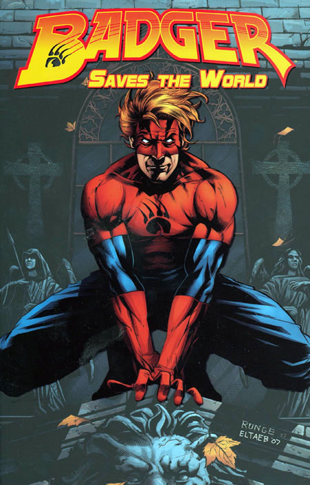 Mike Baron (w) Kevin Caron (a) Nick Runge (c) Badger, that '80s stalwart, is back to do more than just save comics... this time, he's here to save the entire world. In this collection of the all-new Badger adventure written by creator Mike Baron, Badger finds himself up against amazing odds that take him from a small-town jail cell to, well, you'll have to see it to believe it, Larry. The adventure of a lifetime begins here. Badger Saves the World is more than mere entertainment-it is an attempt by comic books to save the human race. Please join us-for the children. This special trade paperback also adds in a bonus 27-page Badger story, Badger: Bull! from the same creative team.