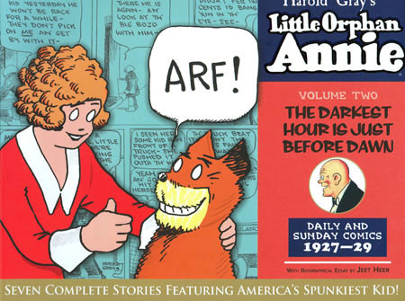 Harold Gray (w & a & c) In Volume Two, 'The Darkest Hour is Just Before Dawn,' America's spunkiest kid stands for fair play as she gives the scoundrels and rats their just desserts! Little Orphan Annie-the original female comics hero-takes on chiseling business men and a gang of thieves, armed only with her sharp wit and a good left hook. Then she helps her surrogate parents by nursing 'Daddy' Warbucks to health and helping save the Silos' family farm. And only that little chatter-box could become a cross between Robinson Crusoe and Dr. Doolittle when she and Sandy are shipwrecked on a deserted island. Enjoy all the unique adventure and earnest charm of Volume Two in The Library of American Comics presentation of Little Orphan Annie, containing nearly 1,000 comic strips from October 1927 to November 1930.